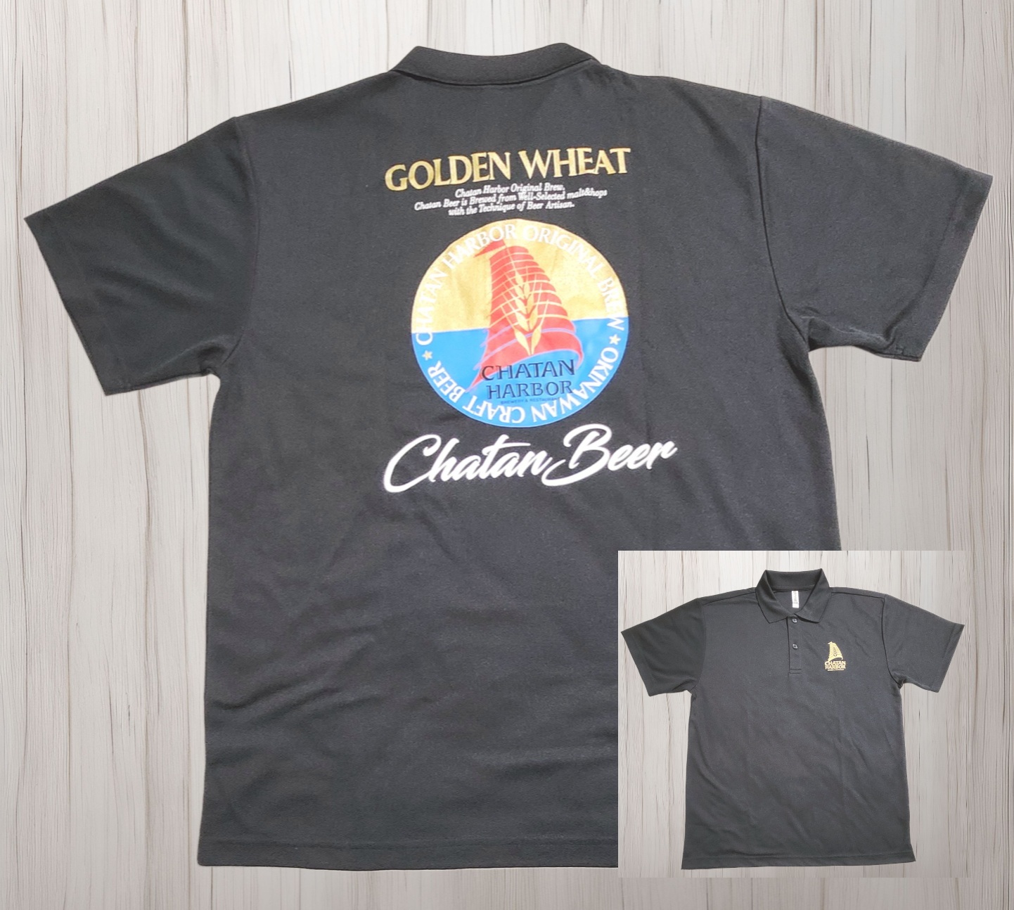 【送料無料】チャタンビール オリジナルポロシャツ ゴールデンウィート 【黒】 LLサイズ